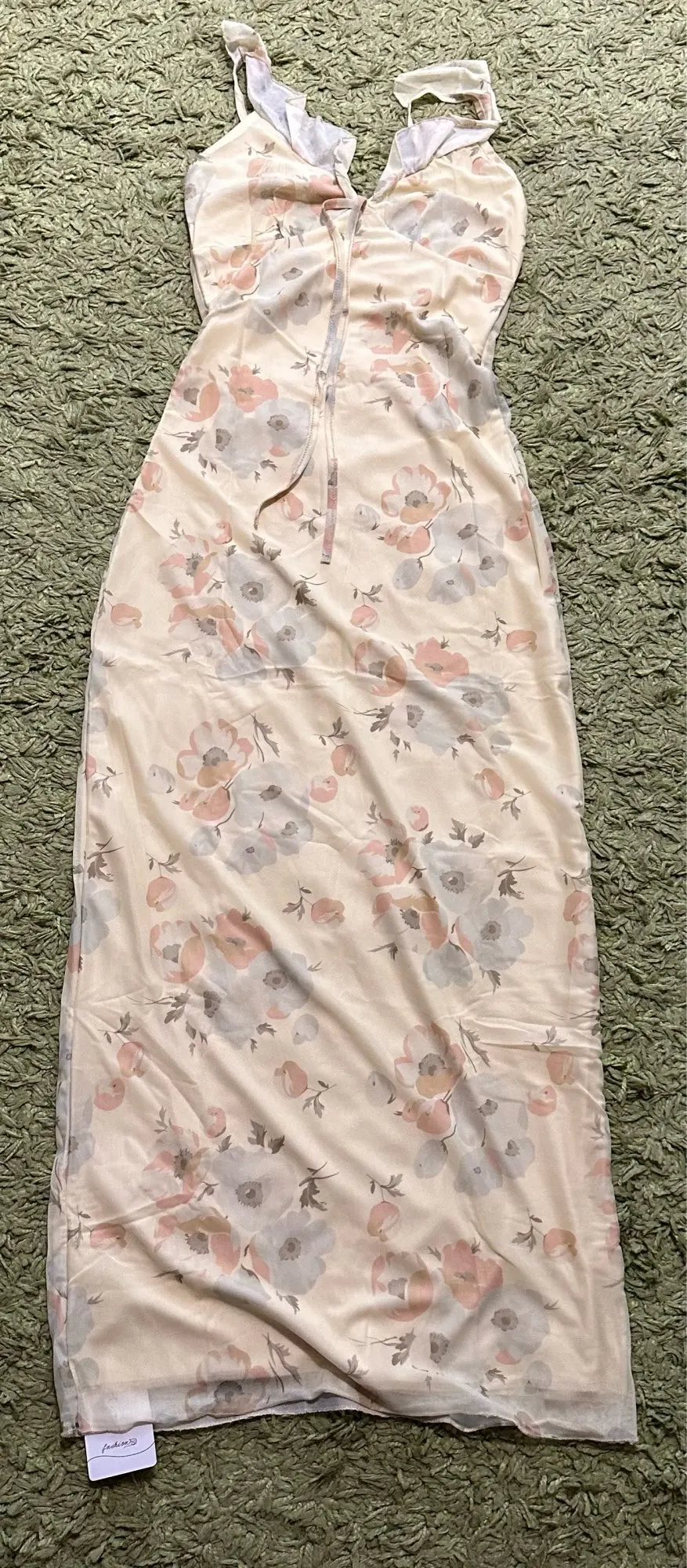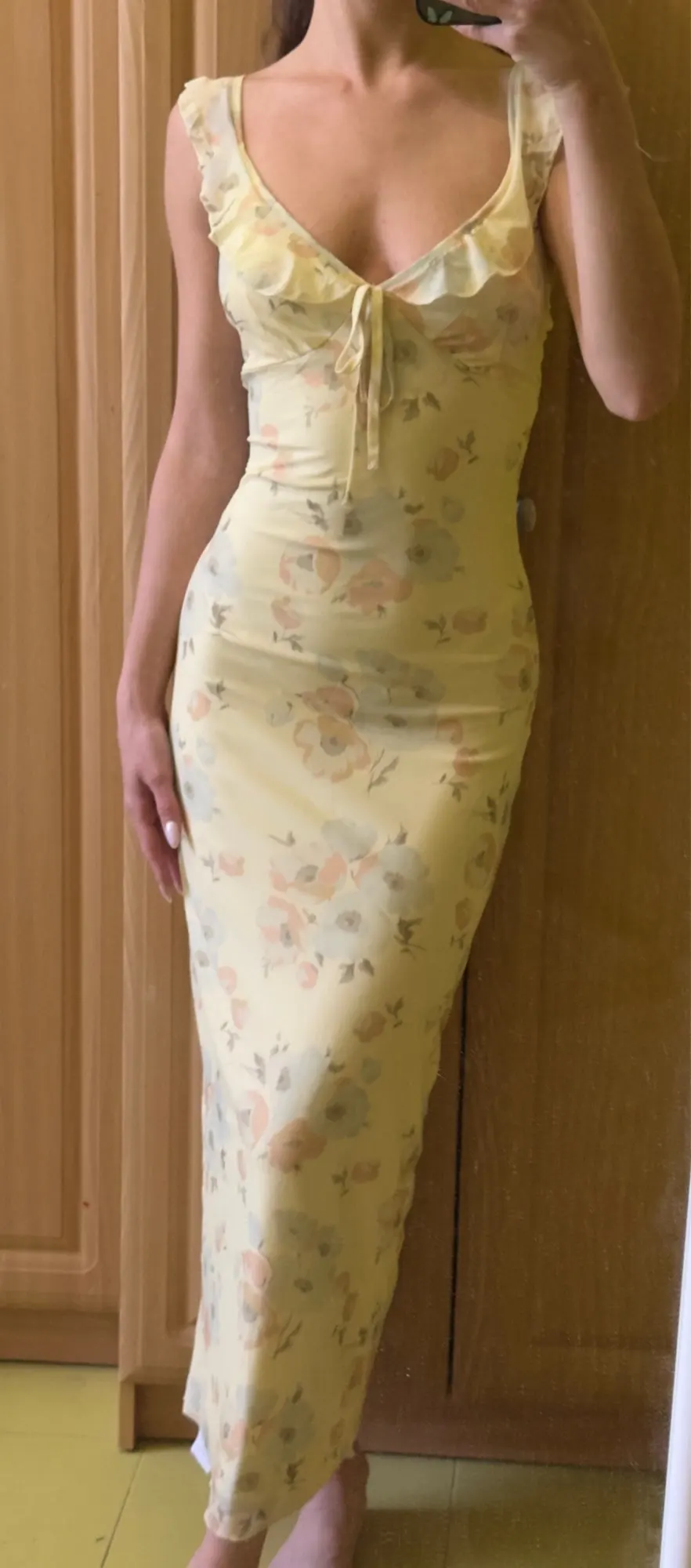 Cryptographic Summer Floral Print Plunge Maxi Dress Outfits Backless Fairy Sun Dresses Vacation Beachwear Vestido Coquette