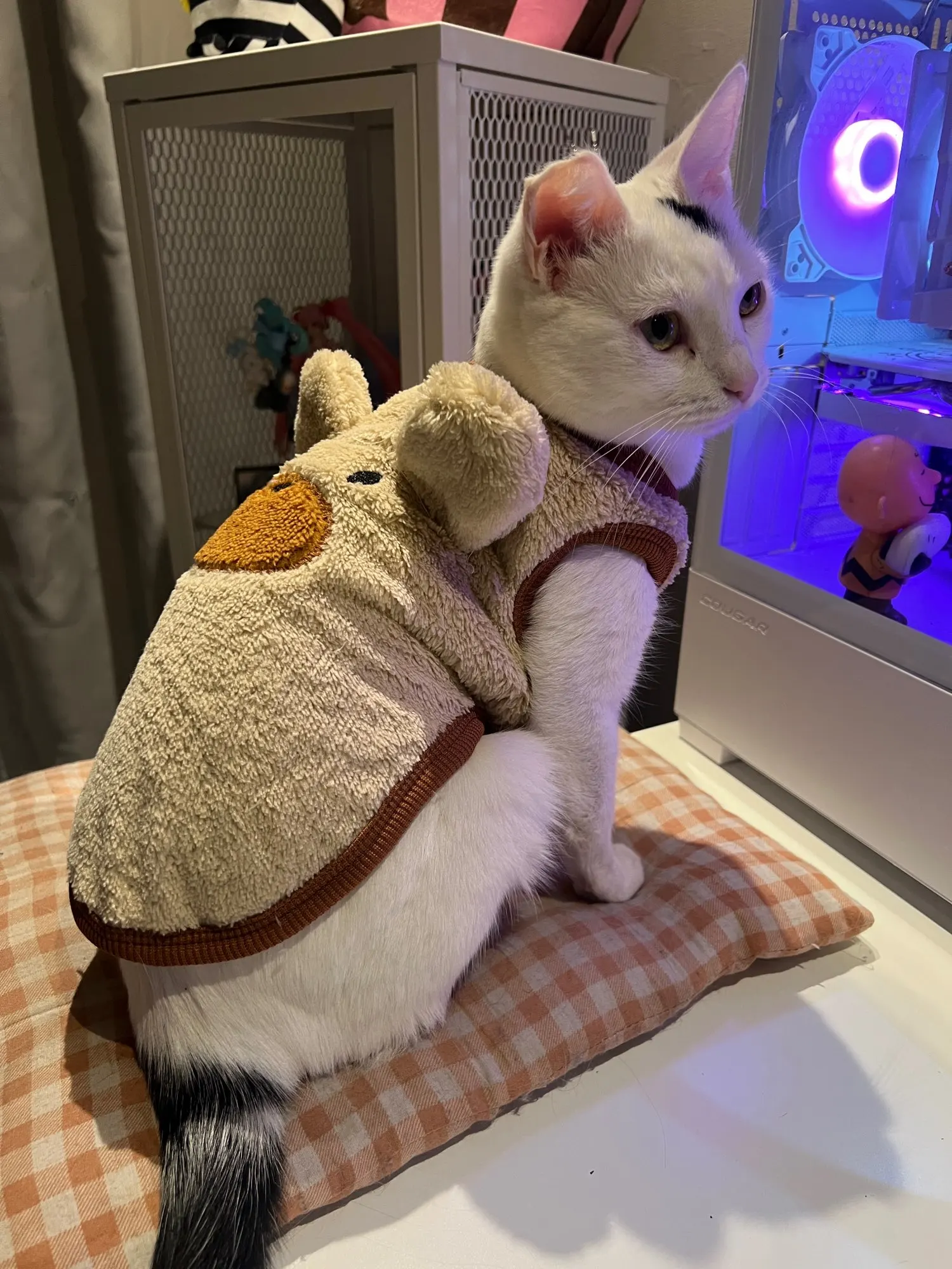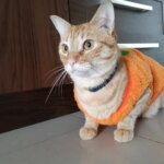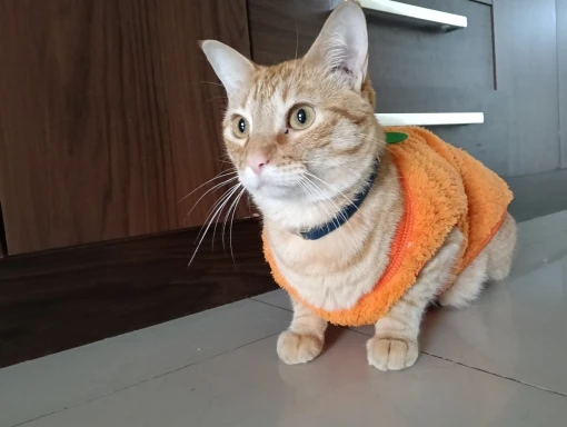 I ordered it at the beginning of June and it arrived today, the 21st, everything is fine with the shipping. The clothes are size L and except for the collar which is very wide, the clothes fit my cat perfectly, it has the perfect length. My cat is not very long and not super chubby either, it’s more of a chubby cat haha. I think I’ll just sew the collar to make it less wide. By the way, the clothes leave orange lint.