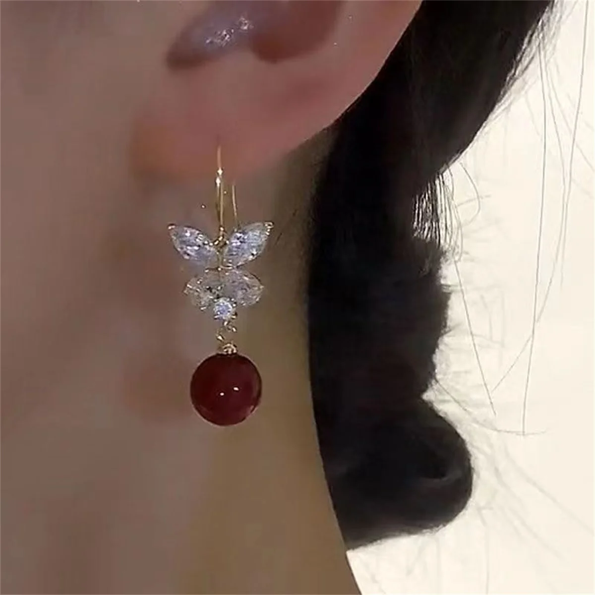 Delicate Red Zircon Butterfly Tassel Drop Earrings For Women Luxury Crystal Animal Butterfly Earring Wedding Party Jewelry Gifts