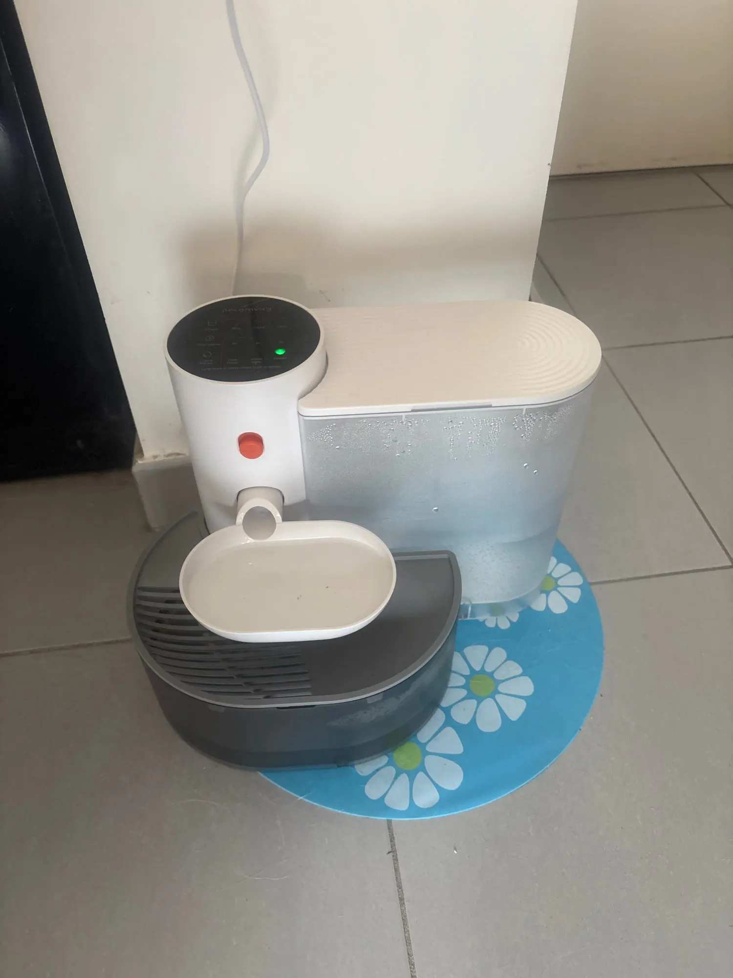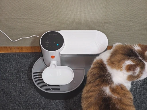 The main body can be disassembled and washed easily. Unlike the continuous flow type, it is usually silent but makes noise when pouring and throwing away, which surprises the dogs. Cats are still cautious, but otherwise it’s good. Since it’s not a circulation type, there’s no need for a filter, and the height of the dish is very nice. Being able to wash it immediately by just removing the dish is the best part. Energy saving, hygiene, height, everything I’ve been looking for for a long time is all here.