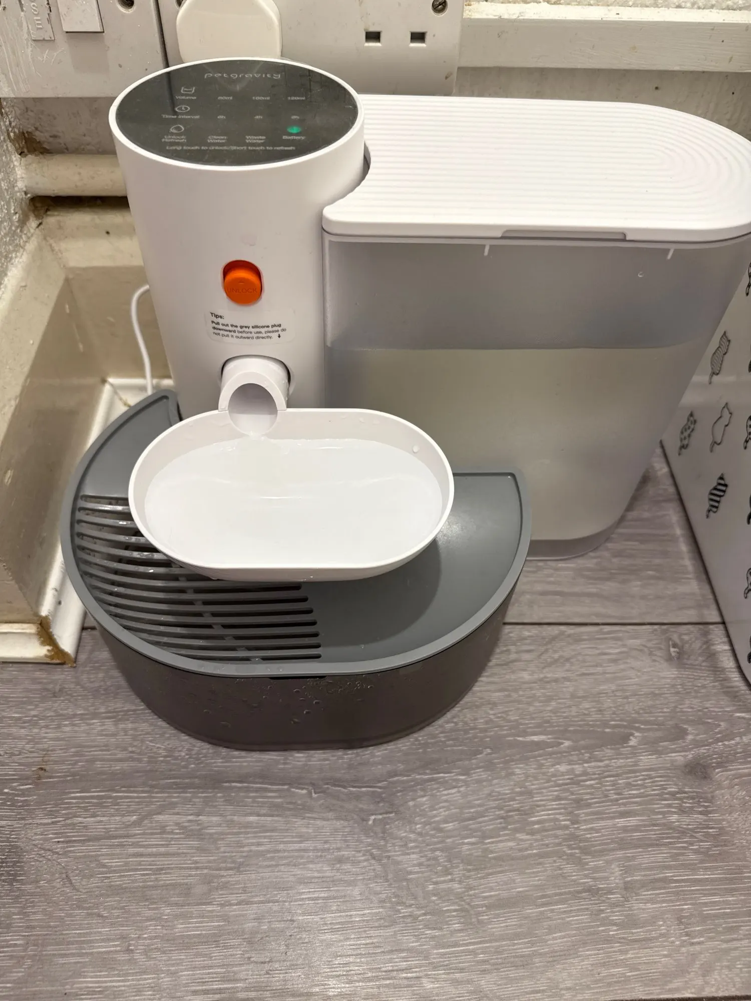 Delivery super fast from Germany. The device looks excellent. The setup is flexible and you can forget about water for the cat for 9 days. An excellent purchase for 900 kroner.
