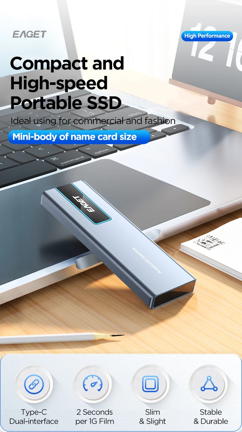 Eaget NVMe External SSD 1TB 2TB Hard Drive 5gbps 10gbps Type C USB 3.2 RGB Portable Hd Solid State Disk for Laptops PC Mac