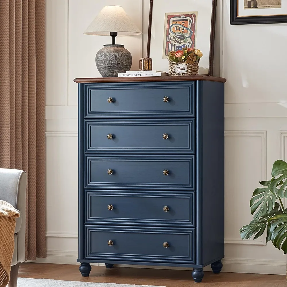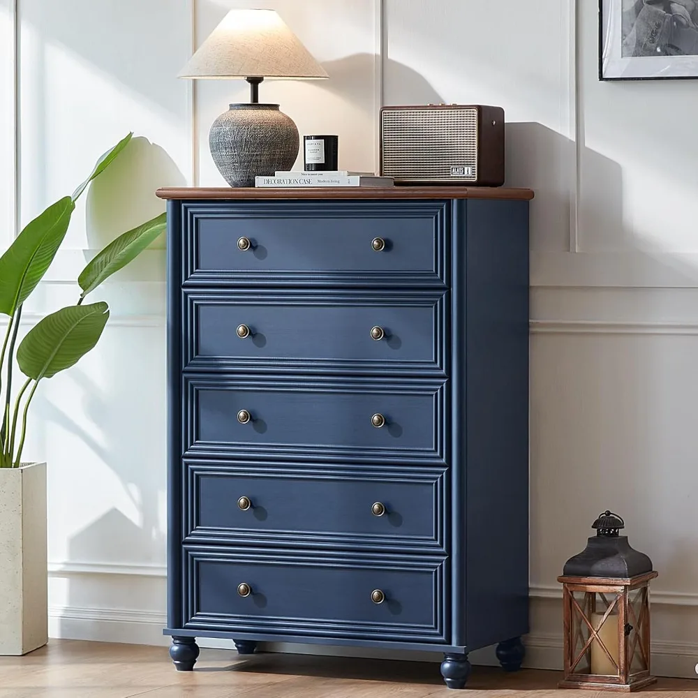 - Durable and Sturdy Materials : Crafted from high-quality wood, this dresser ensures exceptional durability and stability. The solid wood legs and column enhance its sturdiness. With five drawers featuring silent metal slides, this chest of drawers eliminates noise during use. The thickened top increases weight capacity, allowing this dresser for closet to withstand daily use. Enjoy a reliable storage solution that lasts for years.