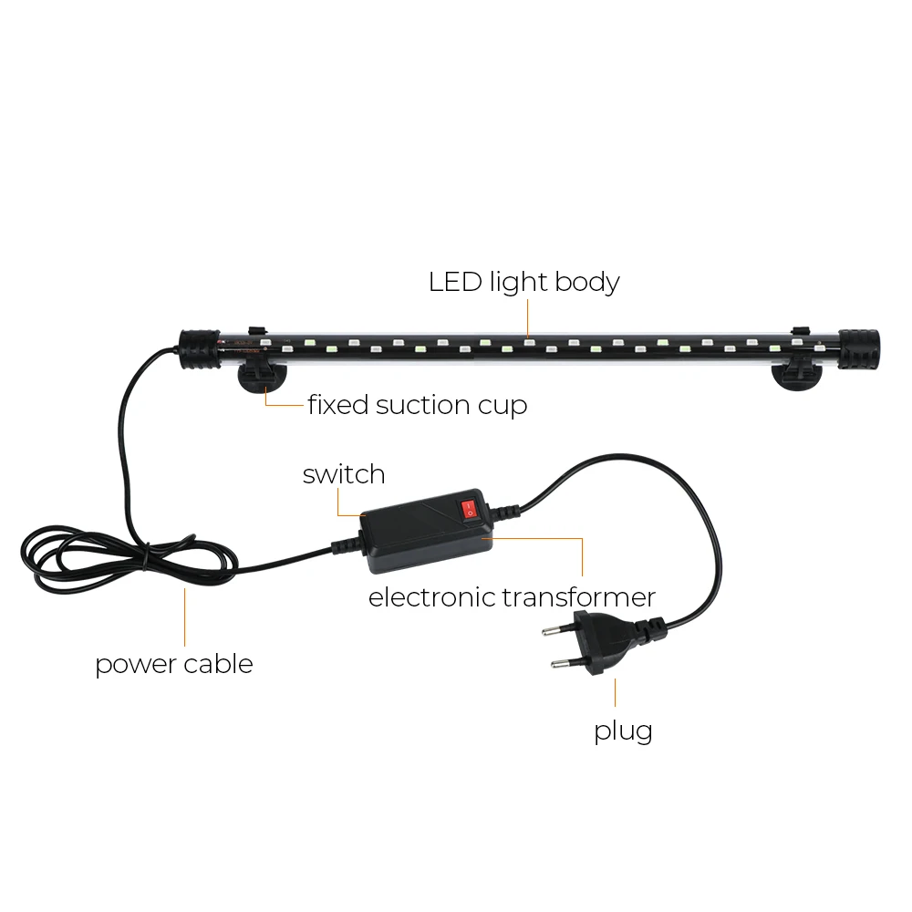 Fish Tank Light Bar Underwater RGB EU Plug AC 90~260V Aquarium Submersible Lamp Waterproof 28/38/48cm