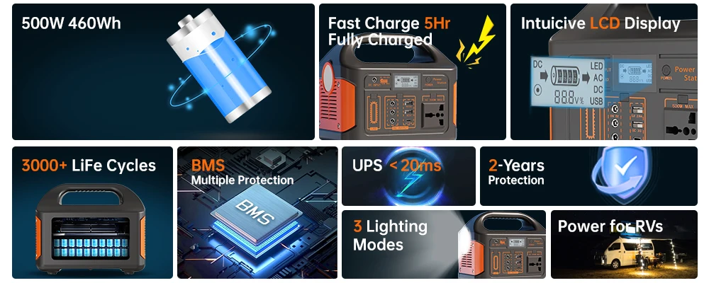 300W 500W power stations are suitable for home emergency power and outdoor camping backup power. They are suitable for use in a variety of scenarios and can meet your power needs anytime and anywhere.