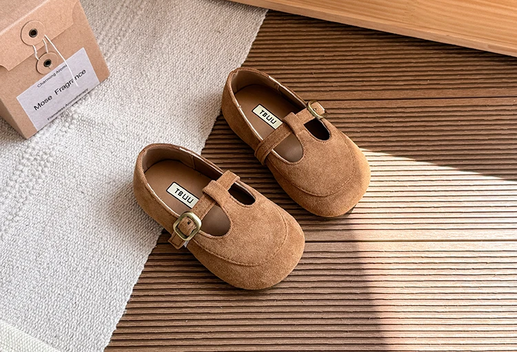 Girls Leather Shoes Toddlers Flats Princess Sweet Little Kids Soft Shoes T-strap Retro Classic Children’s Dress Shoes for Party