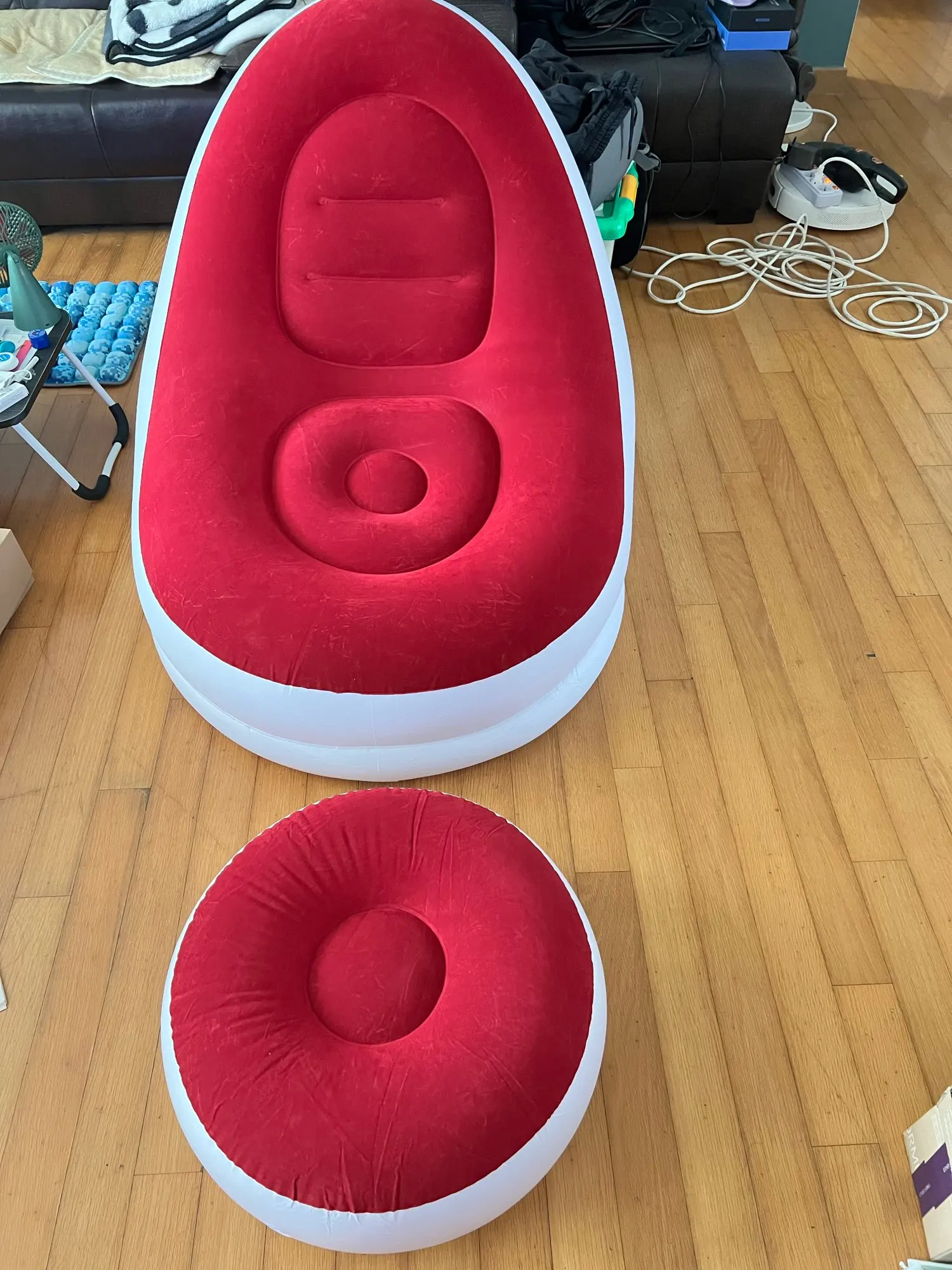 Inflatable Lazy Sofa Chair PVC Flocking Foldable Sofa With Slip-on Lunch Lounge Chair Set