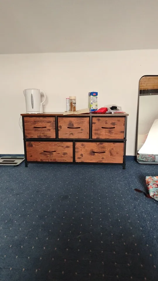 [Large capacity] For easy storage, there are two sizes of storage drawers. The space of these five folding deep drawers is large enough to provide endless organizing possibilities. The wooden top of the dresser storage box is very suitable for placing lights, clocks, glasses and other daily necessities within reach.