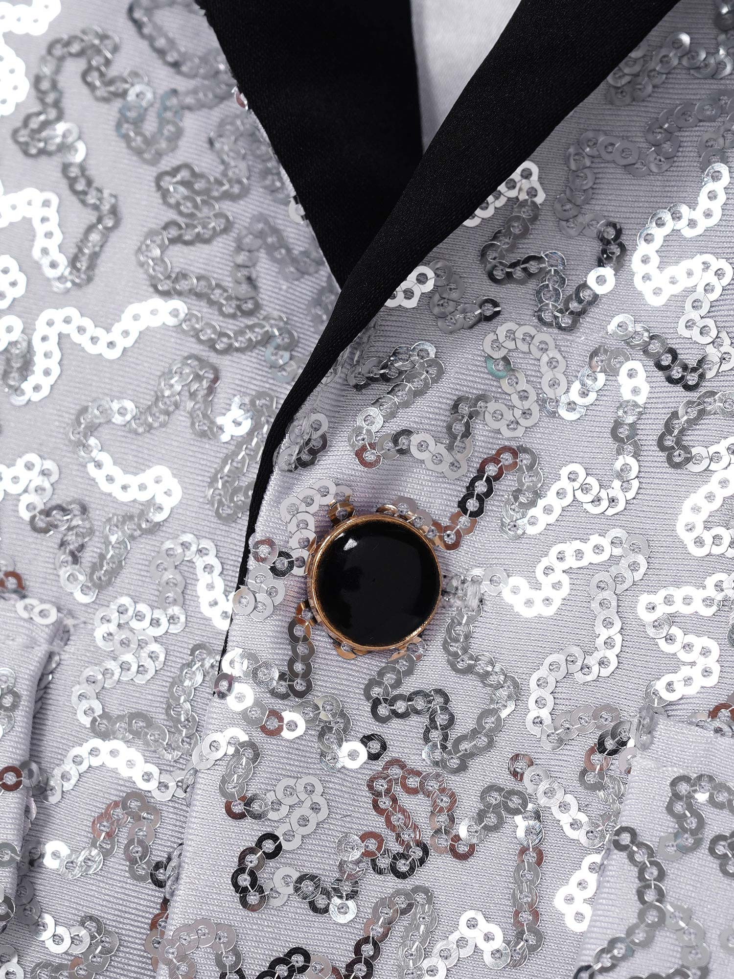 Kids Boys Shiny Sequins Lapel Jacket Coat Glitter Blazer Tuxedo Banquet Dance Wedding Party Modern Jazz Latin Stage Costumes