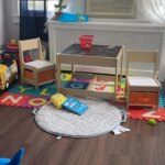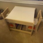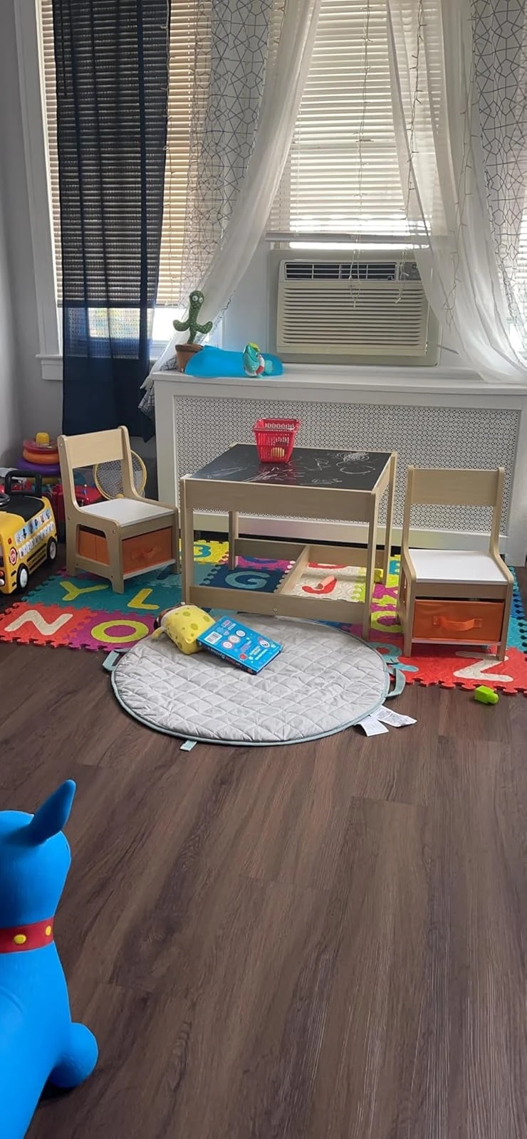 - POWERFUL STORAGE – The bottom of the chairs have removable collapsible fabric drawers for storing child’s toys, books, crayons, etc. The large storage compartment inside the table can also be used to store building blocks, etc. Wide flip up groove is convenient for parents to remove and convert. After activities, just move the chairs under the table compactly.