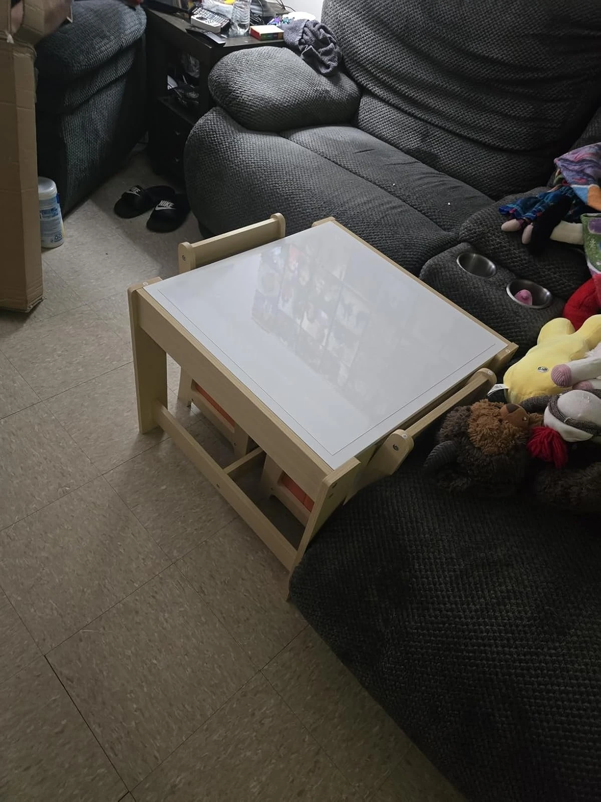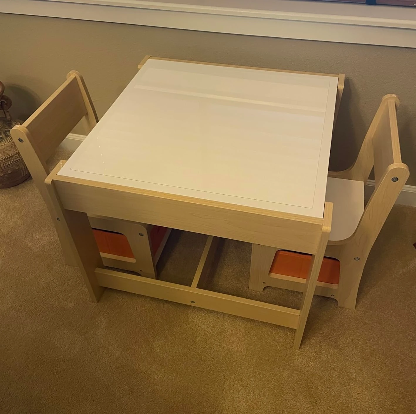 “it was easy to build, the instructions are easy to follow. The chair pull out drawer has a good amount of space. The table and chairs are sturdy. It doesn’t feel cheap. The table space is also good. You can fit a bunch of coloring books, toys etc in there. “