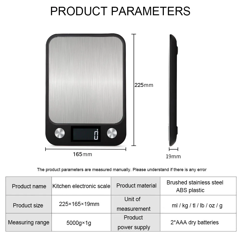 Kitchen Scale 15Kg/1g Baking Weighing Food Coffee Balance Smart Electronic Digital Scales Stainless Steel Design for Cooking