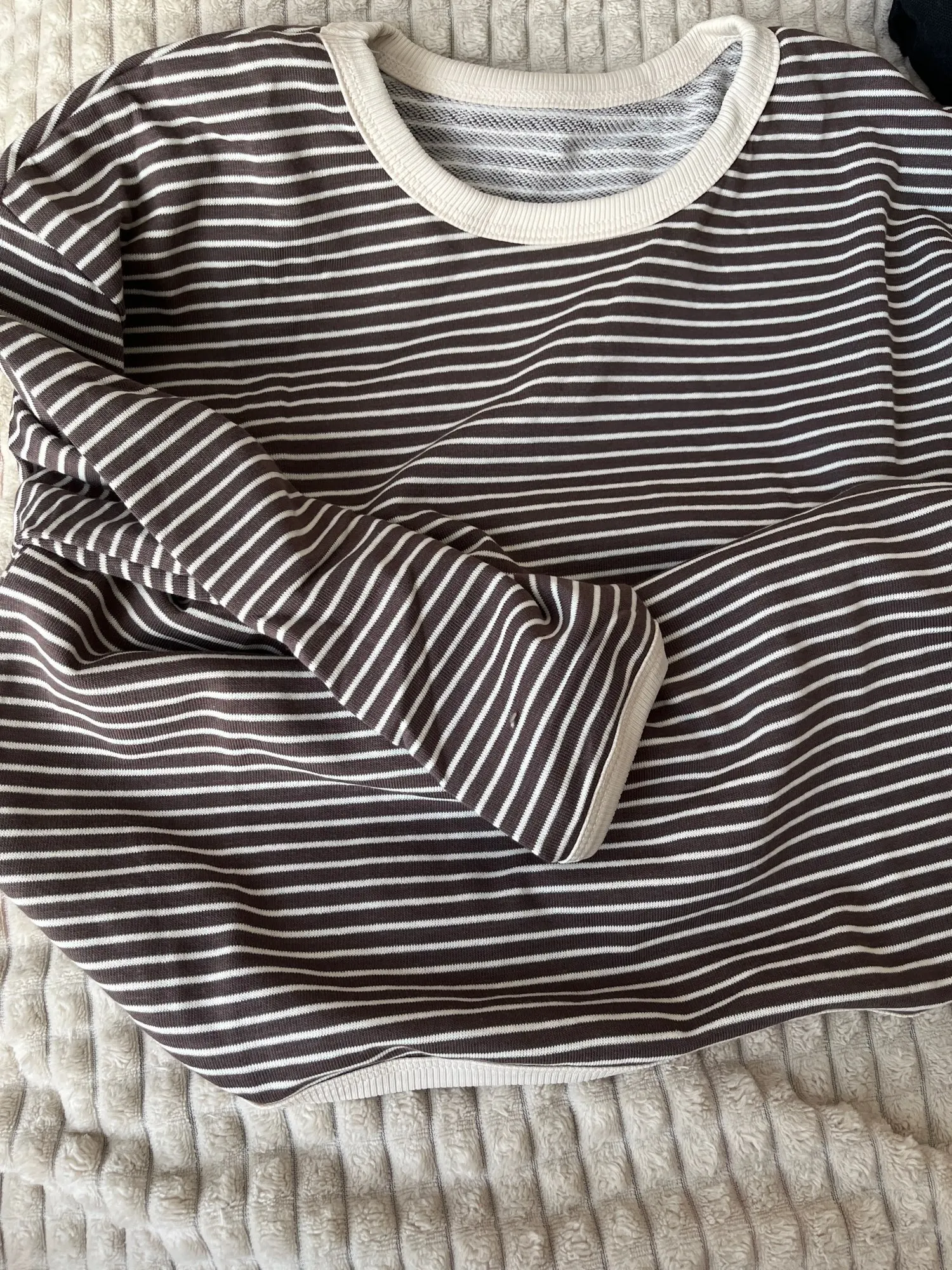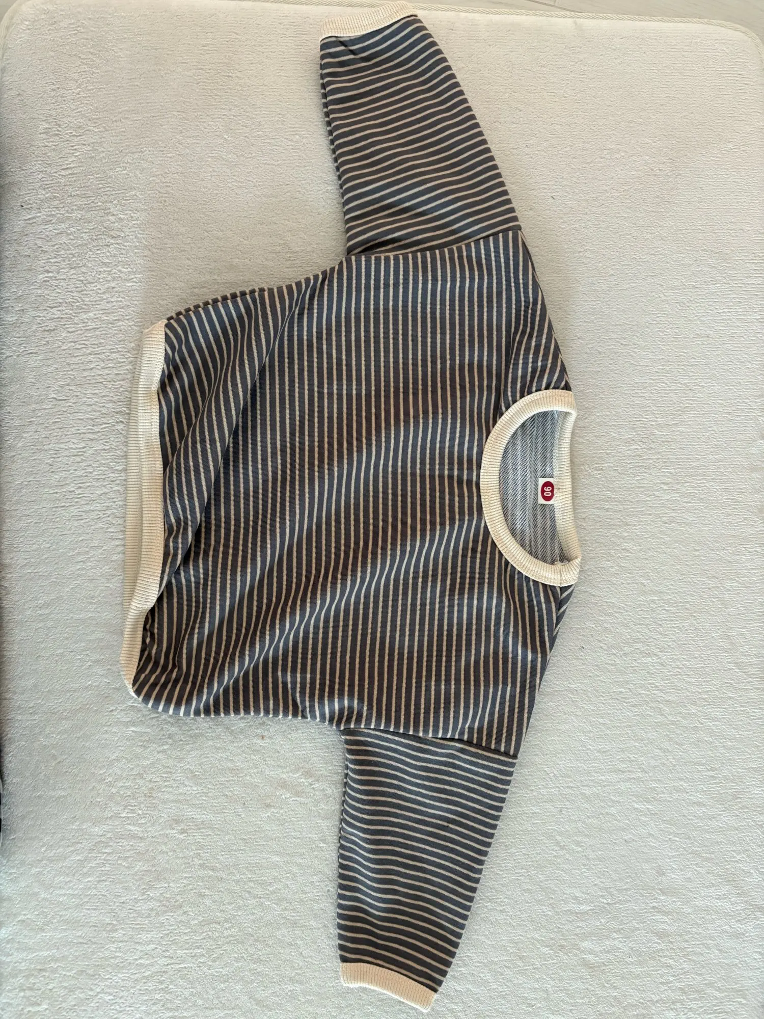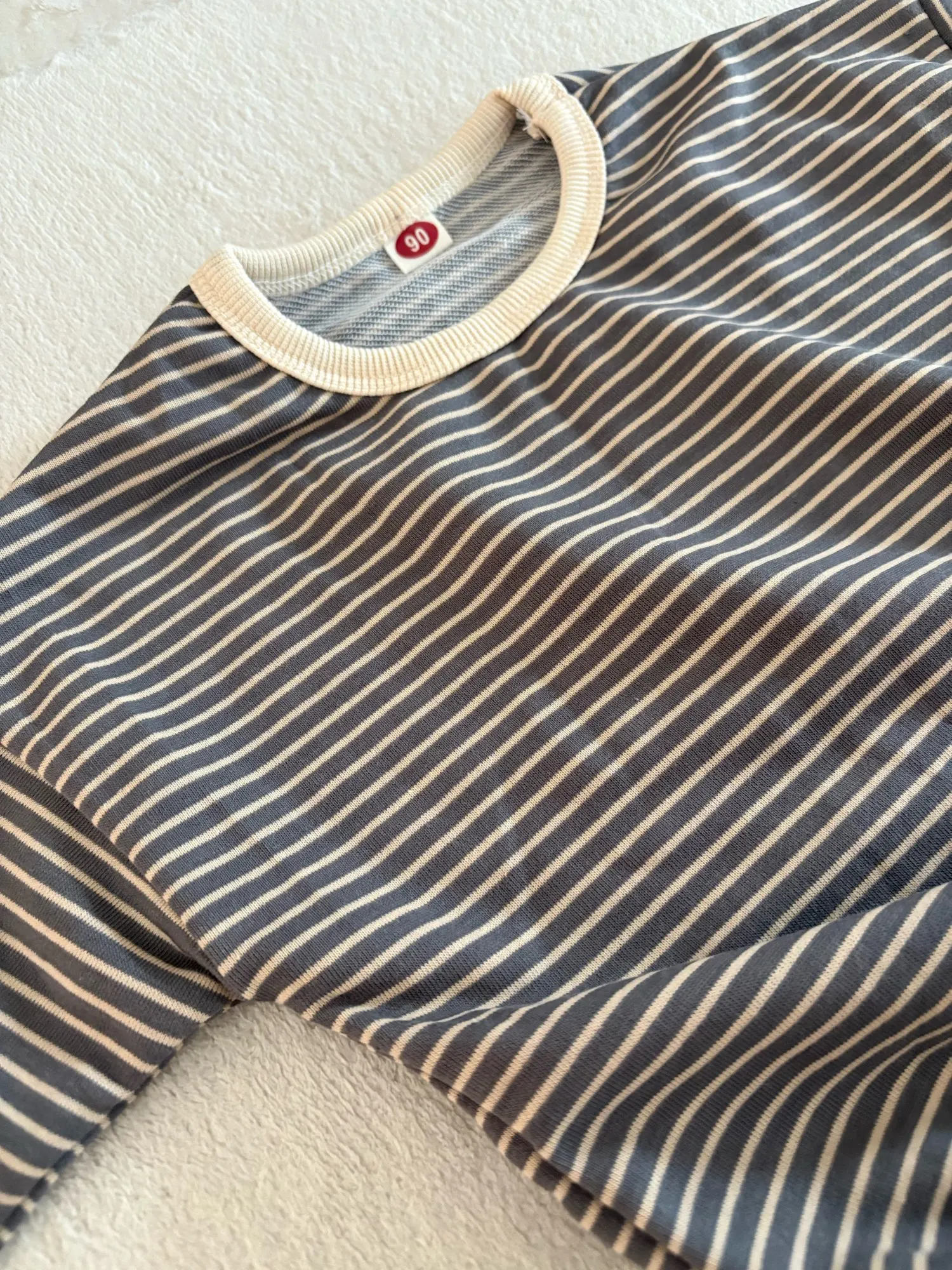 I purchased it for 1,265 yen. The child is 108cm tall and weighs 17.1kg. I bought size 120 and it fits perfectly. It’s a bit uncertain if it will fit next season. The fabric is soft and nice. However, there’s no washing instructions or fabric tags, only size information, which makes it a bit tricky. As a Japanese person, I would feel more secure if there were such instructions. There were no frays or anything like that. I thought it would be better if the ribbing around the neck was a little smaller.