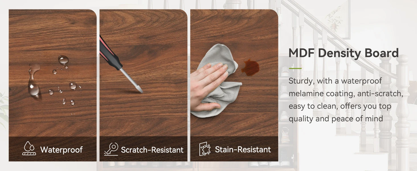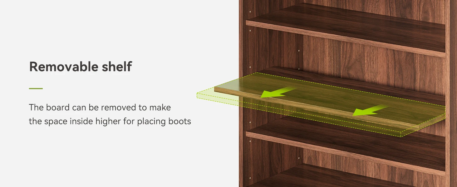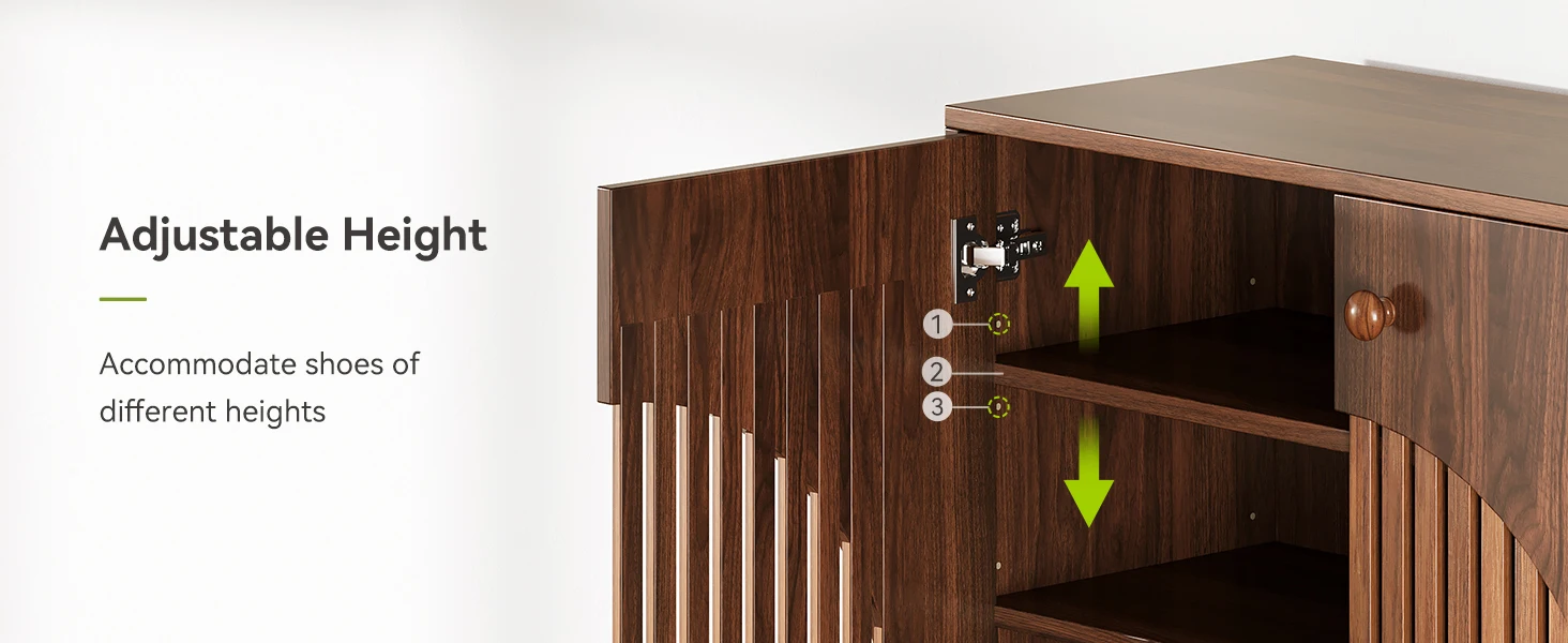 The protective foot pads allow the shoe cabinet to adapt to uneven floors and prevent scratches on the floor and cabinet’s base.