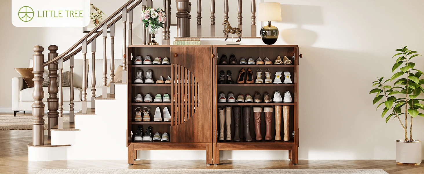 LITTLE TREE 5-Tier Shoe Cabinet, Adjustable Height Shelves, 39.8″ Tall Farmhouse Style Shoe Organizer for Living Room, Entryway