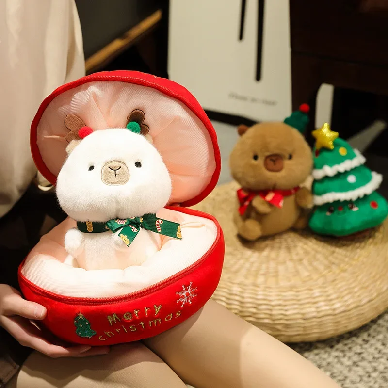 Lovely Christmas Tree Capybara Christmas Apple Plush Toys Cute Animal Dolls Stuffed Soft for Xmas Birthday Festival Celebration