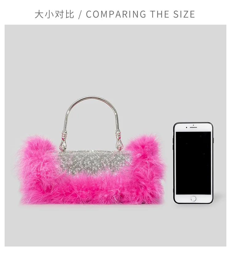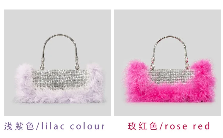 Luxury Ostrich Feathers Diamonds Evening Bags Rhinestone Women Handbag Faux Fur Shoulder Crossbody Bag Glitter Party Small Purse