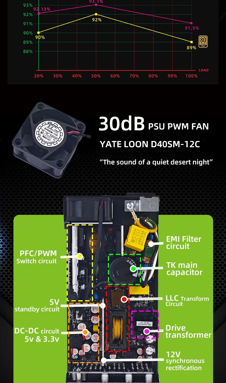 Quite small compared to a typical ATX, the fan makes a bit of noise but it’s not serious at all. The cables are of good quality. Very happy with the purchase.