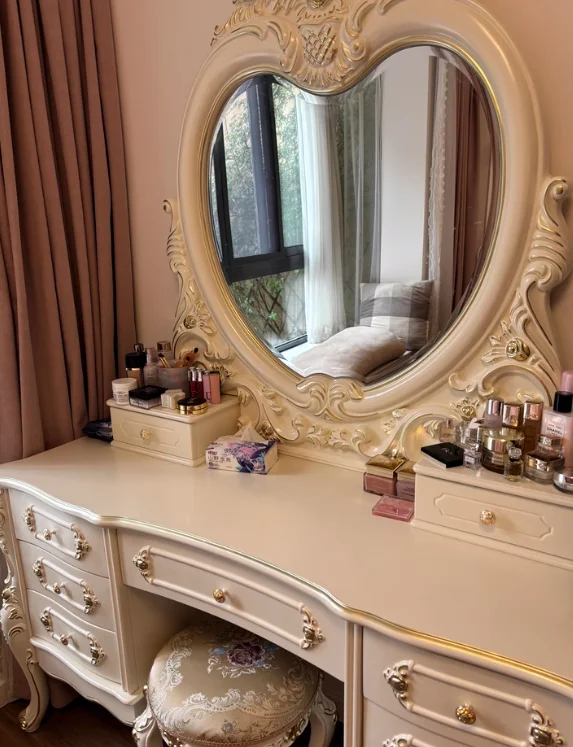 A very, very beautiful dressing table with exquisite craftsmanship, very gorgeous, and high cost-effectiveness. The european style dressing table is high-end and atmospheric