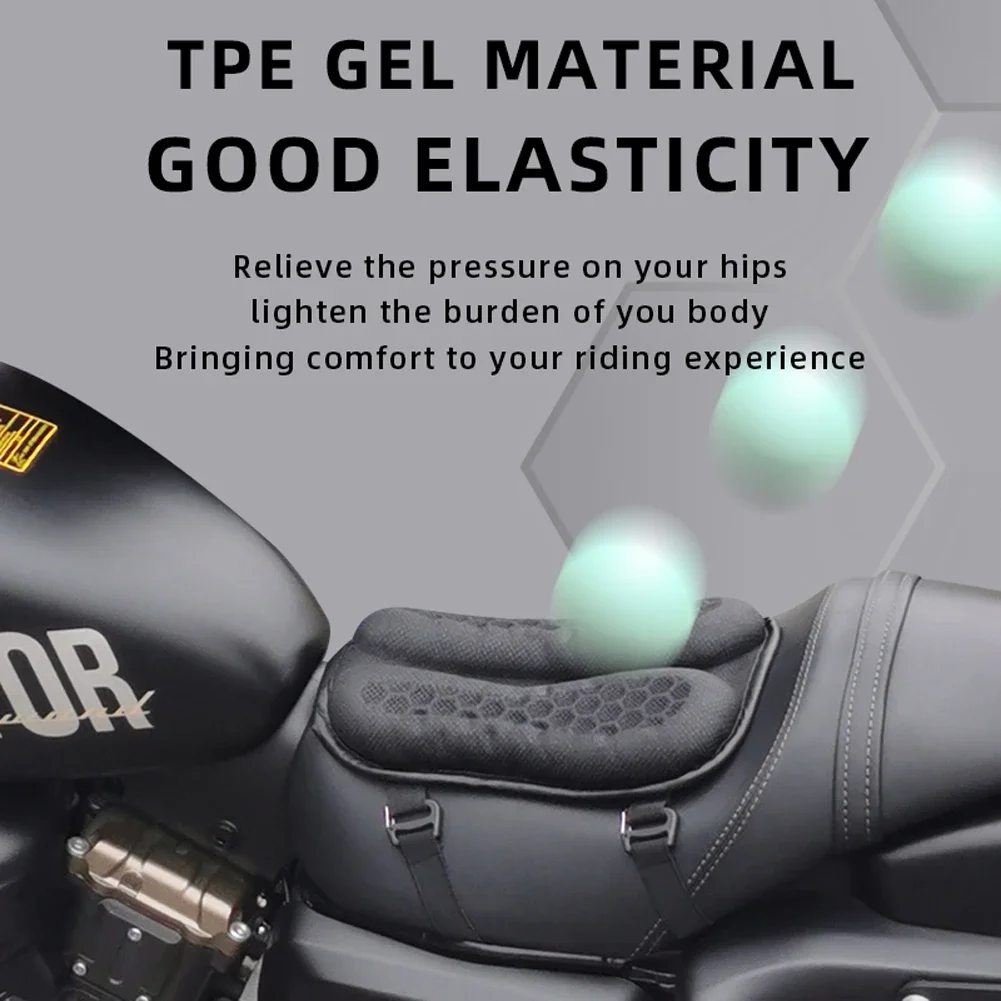 4. Honeycomb Gel Structure: The honeycomb gel structure is used in this motorcycle air cushion, which provides effective shock absorption and a more comfortable experience. The honeycomb gel structure is well accepted and loved by users, and its application has effectively improved the comfort of the motorcycle saddle and reduced vibration during the ride.