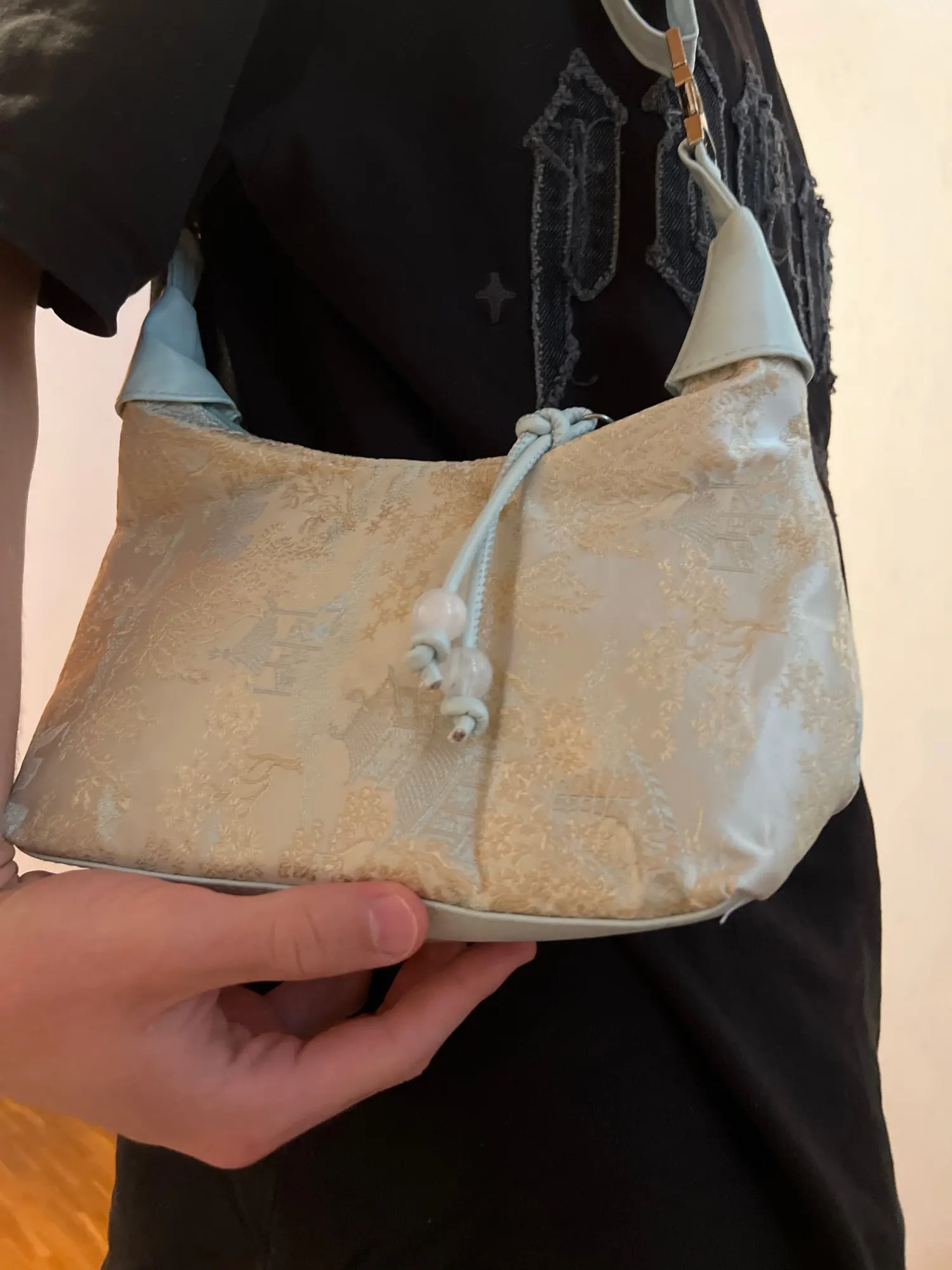 This embroidered handbag features a minimalist bucket design, paired with soft and durable silk fabric, making it lightweight and practical. The bag is adorned with exquisite embroidered patterns, adding a touch of artistic atmosphere to daily wear.