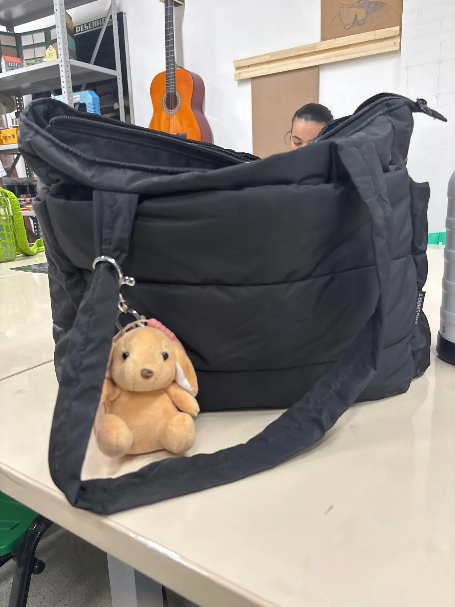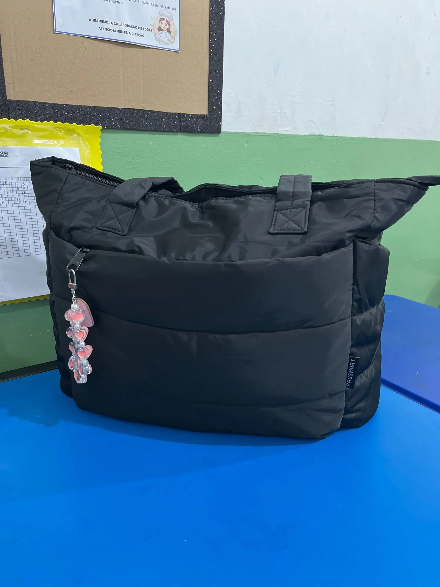Very good bag, arrived in excellent condition. It comes with a larger handle. For those who are unsure, it’s not very heavy and has a lot of interior space. It arrived in 20 days in the Northeast. I recommend it; as I study architecture, I need space and I got plenty in it! And I can still put it anywhere; it’s very easy to clean 💕