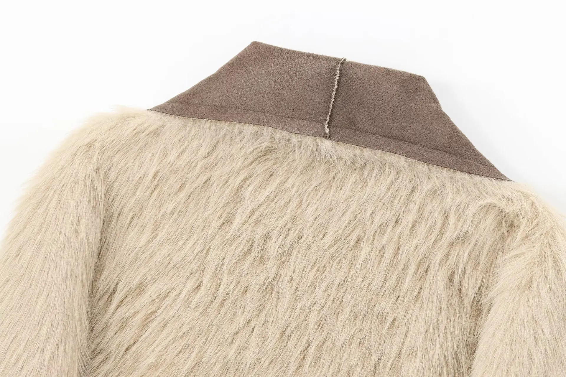 Vintage Fur Leather Long Jackets Women Casual Lapel Big Pockets Thicken Warm Coats Female 2024 Winter Chic Loose Outwears Lady