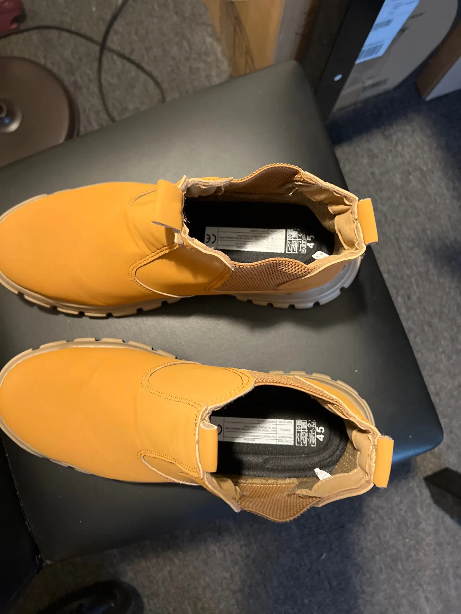 The shoes are of good quality, don’t pay attention to the reviews that say they are big, they are the same size as the safety shoes sold at LIDL. (I took the reviews into account and ordered size 45 which is tight for me).