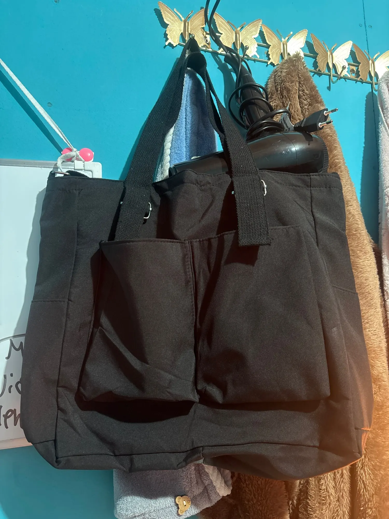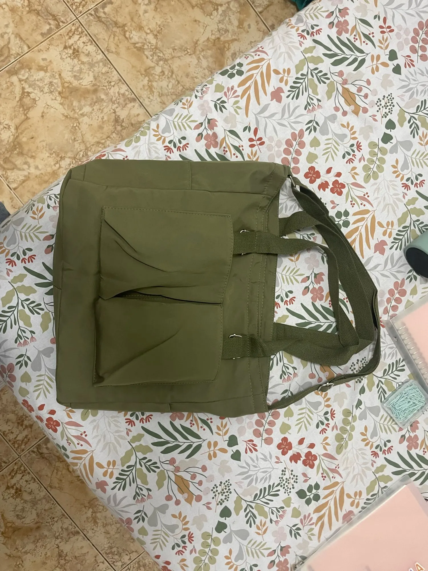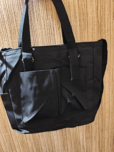Super good quality price bag, when it arrives it seems small but it deceives; as you can see, I carry the 16” laptop, the iPad, the pencil case, the water bottle, the charger, the wallet… Very practical for university, I love that it has double handles.