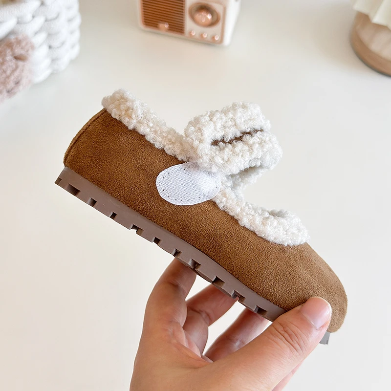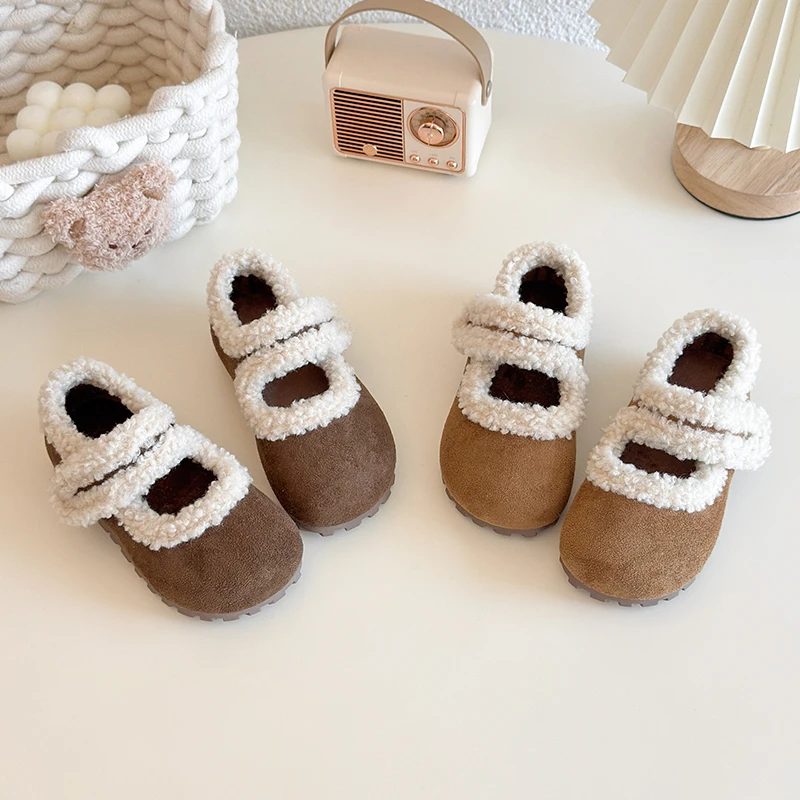 Winter New Children Flat Shoes Fur Cover Toe Light Warm Kids Casual Shoe 2025 Plush Warm Non-slip Leisure Comfortable Girls Shoe
