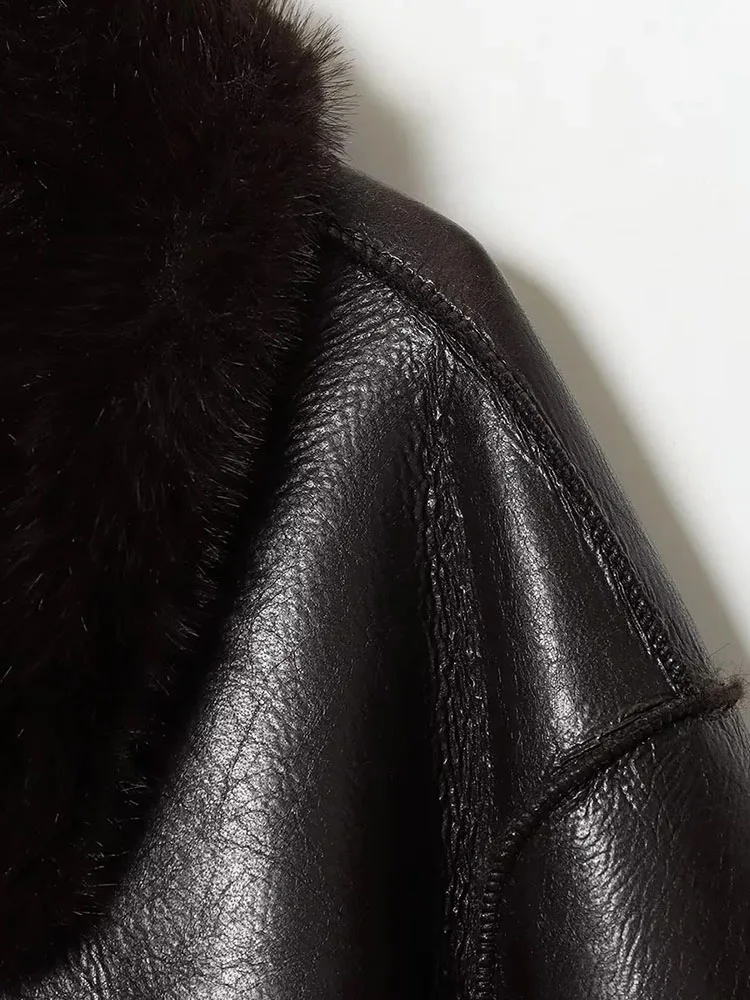 Women 2025 Winter New Reversible Plush Faux Leather Jackets For Blends Thick Winter Office Turn-down Collar Coat Chic Outerwear