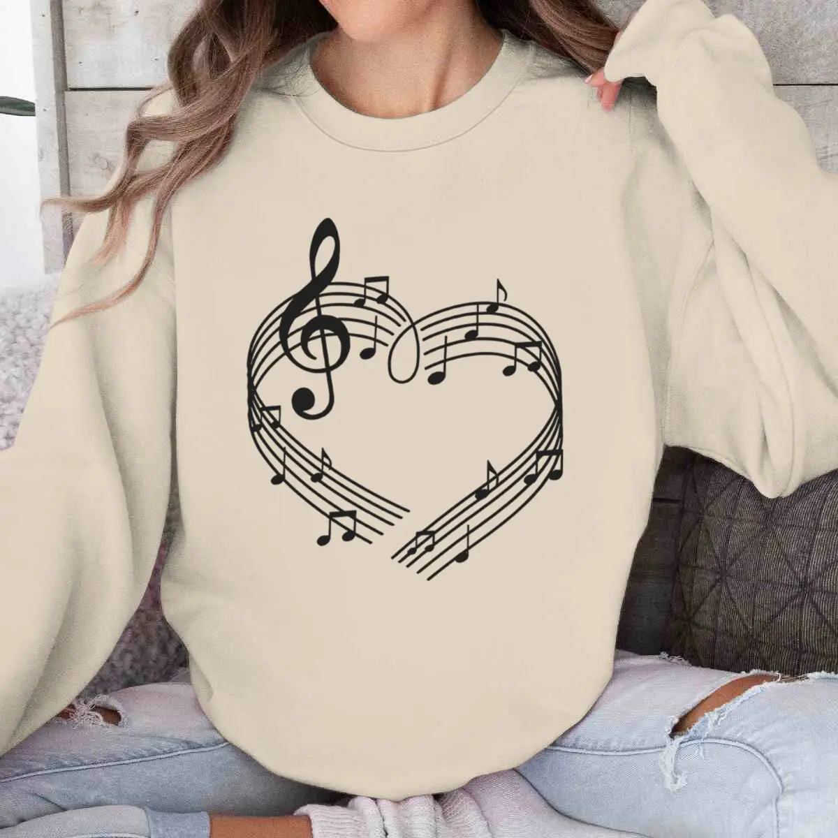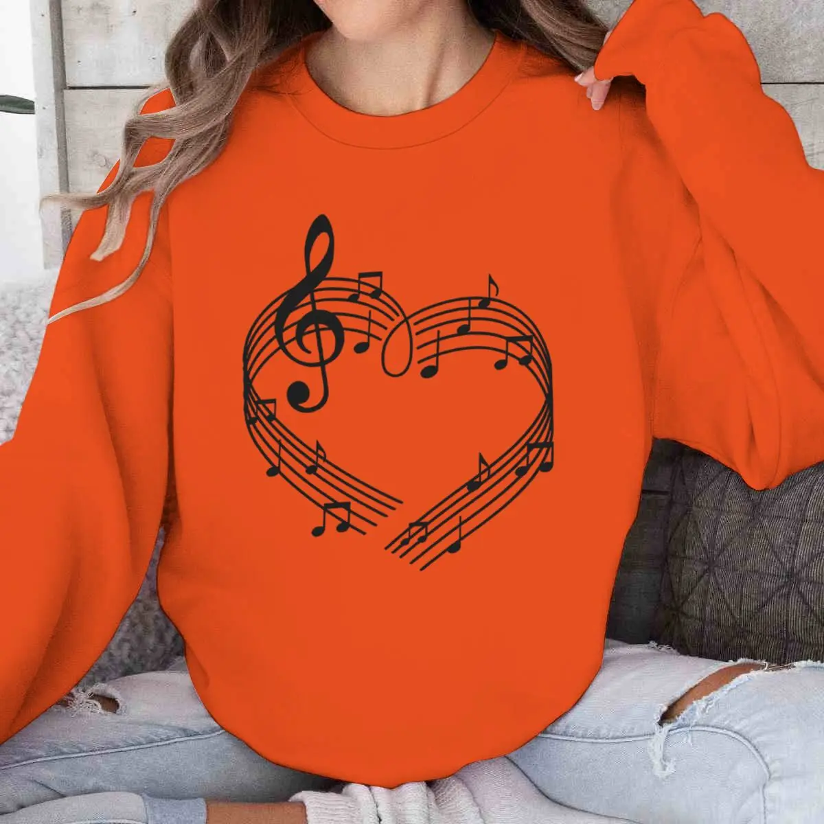 Women’s Clothing Music Note & Heart Graphic Sweatshirts Harajuku Fashion Long Sleeve Top Music Note Hip Hop Women Sweatshirt