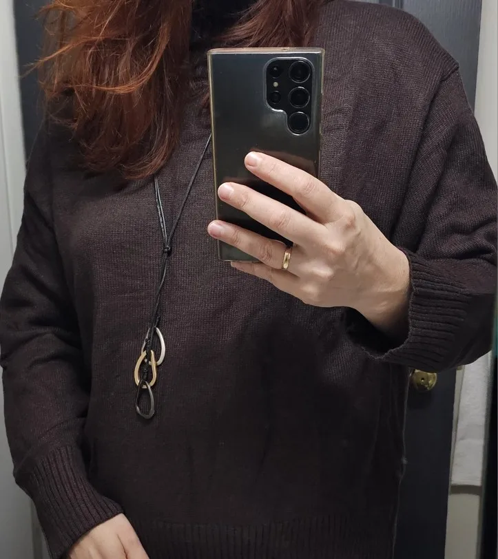 A wonderful sweater for a small cost! The color is nice chocolate ❤️ I took L for luck because I wear a larger size, but it fits nicely, not small. My daughter takes it and wears it oversized.