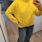 Love the color and the softness. It’s heavily oversized, i wear european l and took m – it’s visible on peactures how oversized it is. Shoulders are crafted in interesting way – it goes to back.