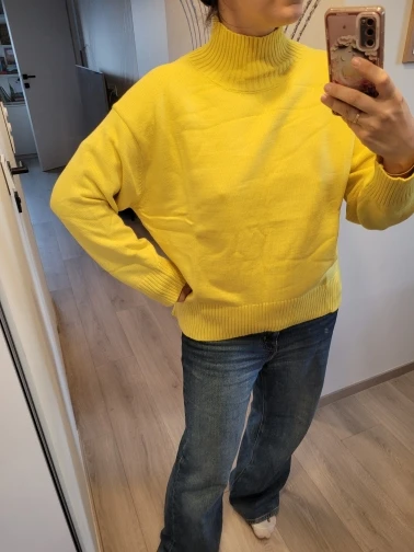 The quality of the sweater is excellent, pleasant to the touch. The collar is soft and comfortable. For my measurements of bust 100 and waist 90, I think it would have been better to take size M, as the material will definitely stretch after washing and wearing. But if you want a fit like on the model, very oversized, then similar to this will be perfect for my measurements.