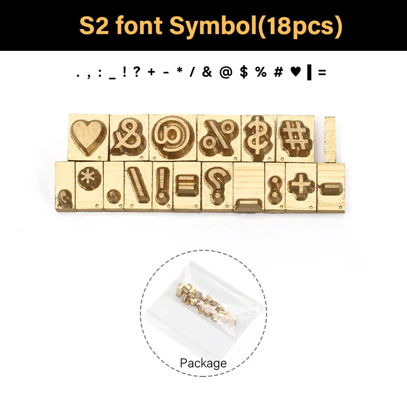 —-Standard kit (85pcs): include Uppercase letter A-Z, Lowercase letter a-z, Number 0-9, Symbol, Blank letter (S)-2pcs, Letter holder (single-row), M5 Steel handle, total 85pcs.