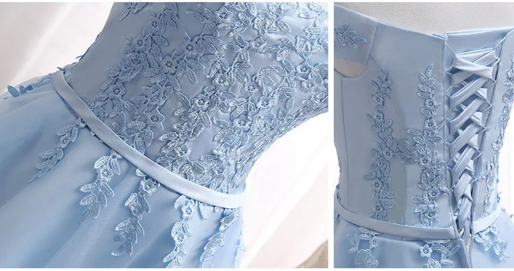 3 reviews for WYHS-70#Blue Short Boat Neck Lace up Bridesmaid Dresses 2025 summer new wedding party prom dress girls cheap Custom wholesale
