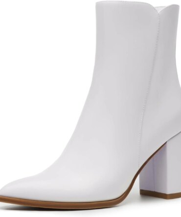 Women’s Heeled Ankle Boots Fashion Pointed Toe Chunky Block Heel Side Zipper Short Booties
