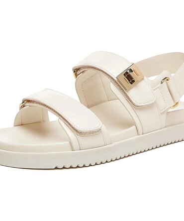 Women’s Flat Sandals Comfort Adjustable Double Strap Slip on Leather Footbed Sandals shoes for women