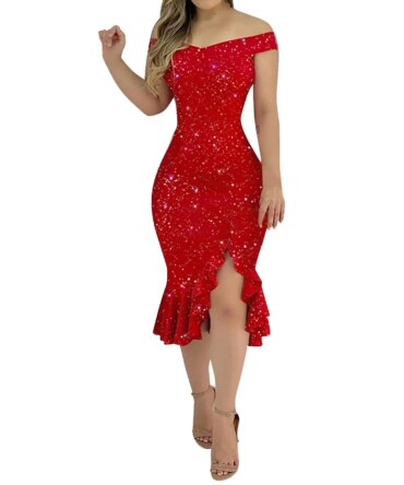 Women’s Fashion Summer Off Shoulder Short Sleeve Sequin Ruffle Irregular Dresses elegant women’s dresses for party 2024