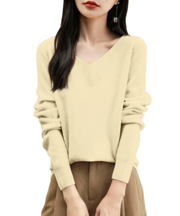 Women’S Fashion Flat-Knit V-Neck Pullover Sweater Solid Color Long-Sleeve Top Pulls Femmes Woman Clothes Sweater For Woman