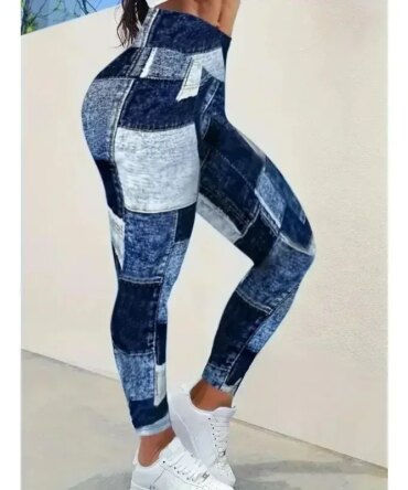 Women’s Plus Size 1XL-5XL Casual Tights Sports Pants Casual Colored Slim Fit Pants Imitation Denim Tight High Waist Leggings