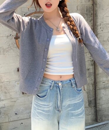 Women’s Long Sleeve 2025 Cardigan O Neck Button Down Knit Lady Autumn Spring Knitted Single-breasted Cardigan Sweaters