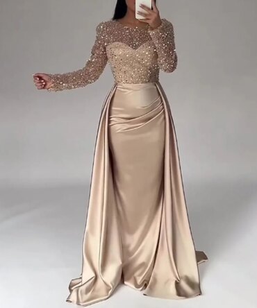 Women’s Luxurious Sequins Evening Dress Round Neck Ruched Tiered Bodycon Maxi Dress For Female Prom Wedding Host Elegant Dresses