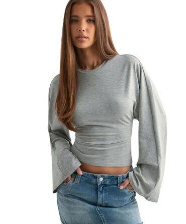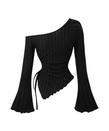 women’s New off shoulder cross long sleeved slim fit casual street style asymmetrical elegant T-shirt trumpet sleeve top