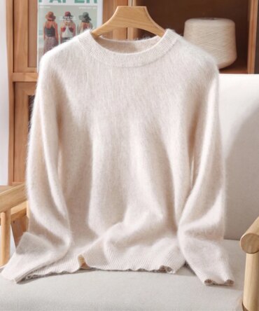 Women’s O-Neck Casual Loose Exquisite Soft Warm 100% Mink Cashmere Sweater Autumn Winter Pullover Fashion Solid Clothing Tops