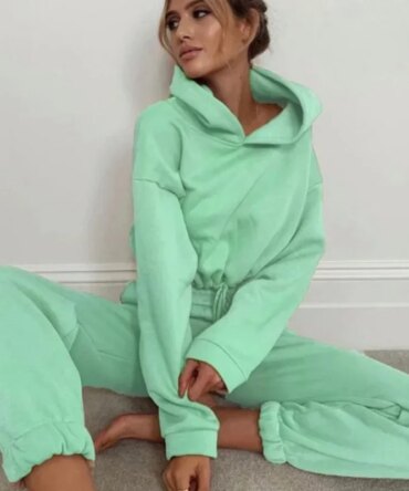 Women’s Long-Sleeved Sports Suit, Casual Waist Wear, Fashion Trend, Two-Piece Set