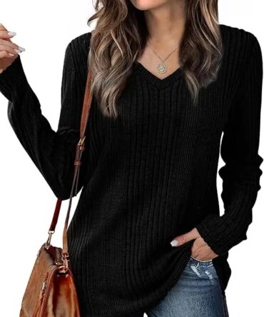 Women’s knitted sweater V-neck versatile top long sleeve 2024 autumn and winter style wine red loose inner T-shirt