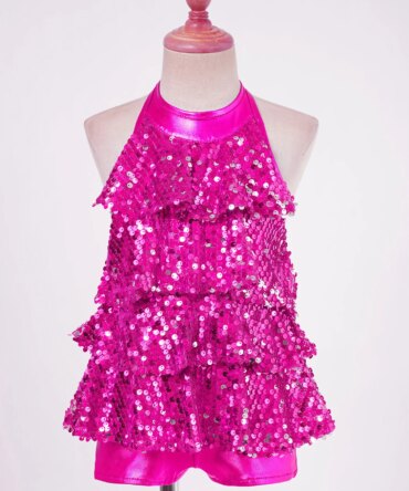 Girls Sequin Jazz Street Dance Outfit Costume Shiny Crop Top with Tiered Unitard Skirted School Basketball Cheerleading Costumes